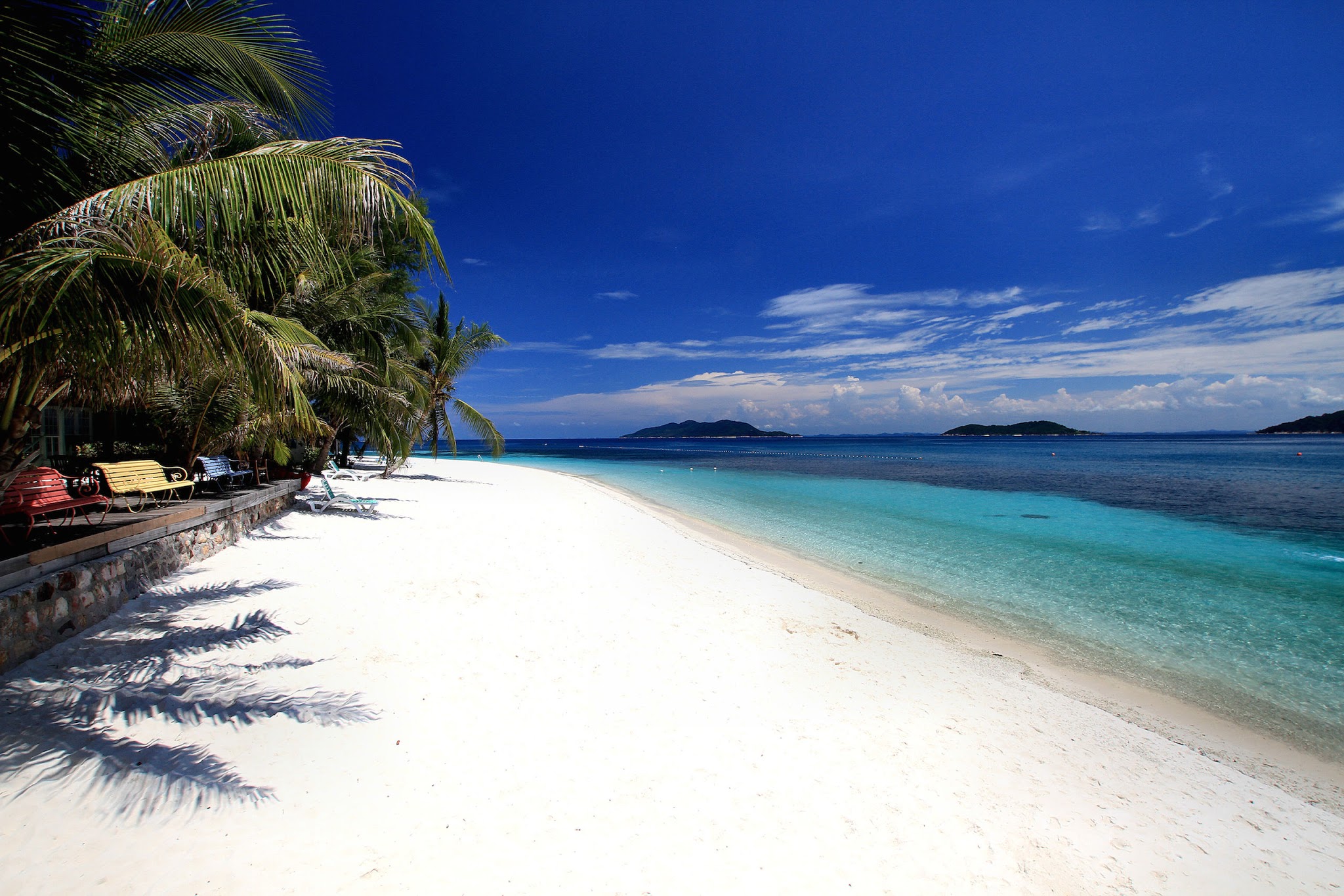 壁紙 海 熱帯 ヤシ ビーチ サンベッド 自然 ダウンロード 写真